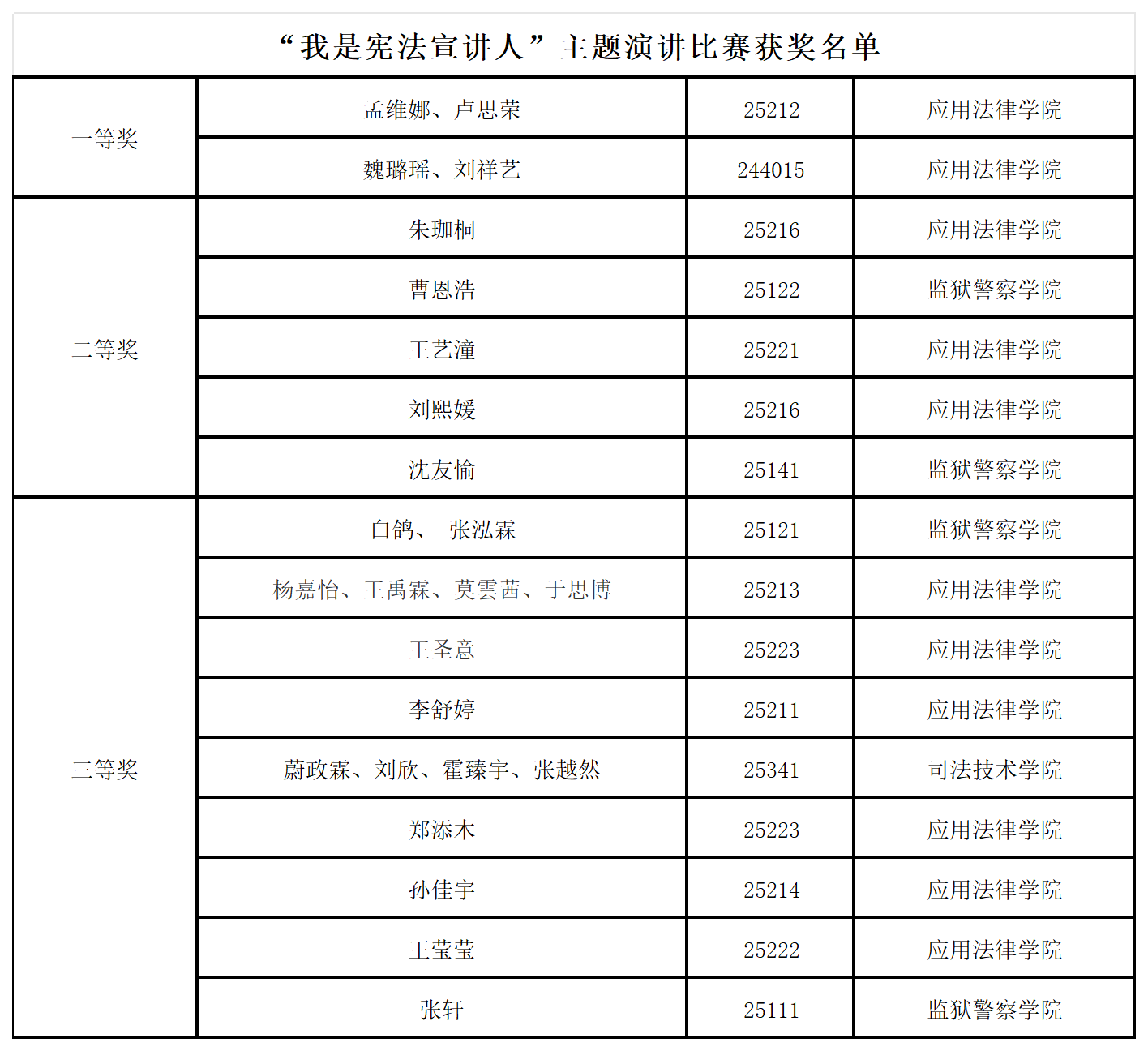 决赛在模拟法庭隆重举行,现场气氛庄重而热烈。选手们精神饱满,自信从容地走上讲台,结合鲜活实例,以严谨的逻辑、激昂的表述,深入讲述了对宪法精神的理解与感悟,充分展现了新时代警院学子对中国特色社会主义法治精神的深刻理解和崇高追求。经过激烈角逐,最终评选出一等奖2名,二等奖5名,三等奖9名。